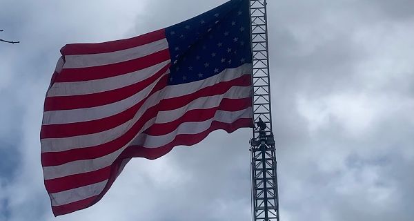 The ceremony took place late morning on Friday, November 11 — Veterans Day — under a flowing American flag, which was suspended over a Westwood Fire Department truck.