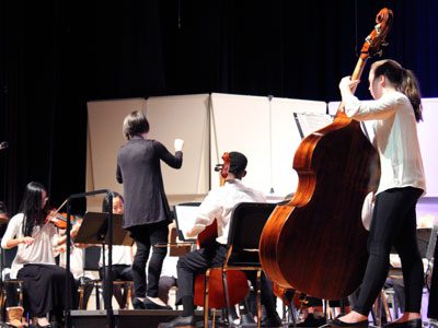 The high school students returned to the stage as both orchestras powerfully performed “Radioactive” and “Momentium,” drawing rounds of applause from the impressed audience members.