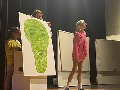 Monday through Thursday marked the entire production schedule, with a full run-through on Thursday and a performance on Friday afternoon rounding out the week of camp. Actors buzzed around the stage with immeasurably energy and excitement, ready to take the stage. Gagnon mentioned the actors were impressively off-book the day after scripts were given to them.