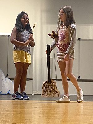 Children learned singing techniques and choreography, of course, but also picked up a new assortment of valuable skills. Props, like the witch’s broom and the wizard head, were all handmade by campers and counselors. Costumes were conceptualized through children’s visions as they borrowed from the wardrobe to make their characters come to life.