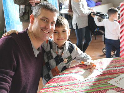 Seven-year-old Drew Forteith writes a letter to Santa with his dad, Thomas, at Westwood’s annual Winterfest. Photos by Laura Drinan
