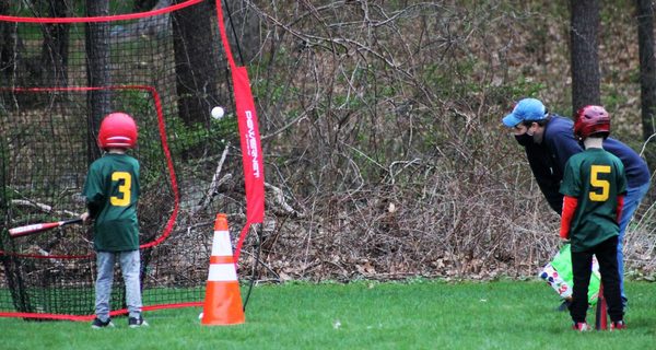 Instead of a game, the players did a handful of drills, like throwing the ball at the backstop, rolling the ball to each other barehanded, playing a basic game of catch, running the bases, and hitting the ball off a traffic cone into a large net. Coach Clemons said he wasn’t sure what the team would do for their next scheduled game, as he needed to see how far along the other coach felt his team was, but noted that if they did play a game, the rules are still focused more on developing player skills than seeing which is a better team.